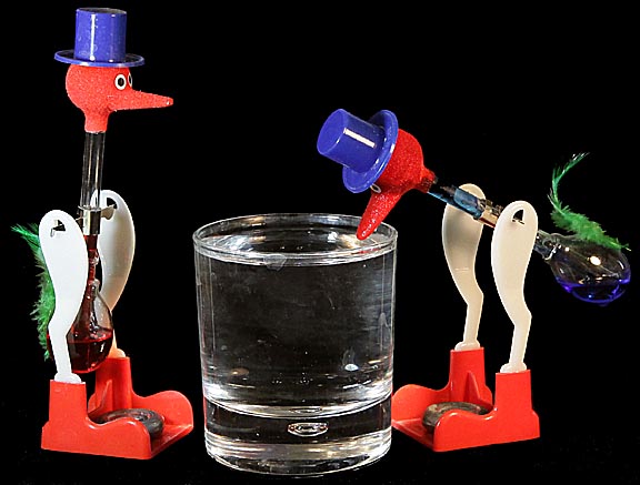 Besides being silly, and therefore fun, drinking birds can serve a practical purpose in eduction. Using the material on this page an excellent science project can be created for students of almost any grade.