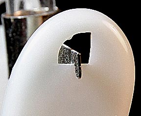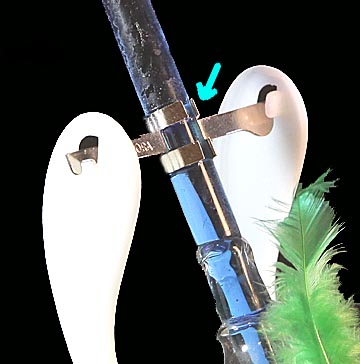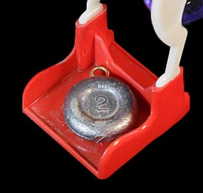 The yoke slides up and down the tube enabling the drinking speed to be adjusted. Sliding it down increases how many times per minute the bird takes a drink because it takes less liquid moving up to tip the bird over. Very quickly a point is reached where the bird never returns to a straight upright position to rock comically back and forth. Instead it only eases back to a 45-degree incline before starting to dip down. Personally, I find this a bit boring. Sliding the yoke up means more liquid has to rise to tip the bird over so this reduces how many times per minute the bird takes a drink. It also increases how long the bird spends rocking back and forth before starting to tilt downward. Careful adjustment slows the rate at which the bird tilts so that it seems to hang in the air, leaning over with excruciating slowness until it finally reaches the water and suddenly bursts back to life as it suddenly pops upright. Go a little beyond this point and the fulcrum, or tilting point, is so high not enough liquid ever gets high enough to allow to the bird to tilt over and drink. For myself, I prefer the yoke to be set so the bird drinks every 15 seconds. This provides enough action to keep it interesting, a dramatic pause before it finally reaches the water and an entertaining amount of rocking back and forth once it does.