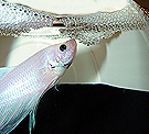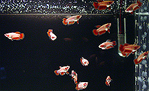 They had been jarred next to each other and actively courting for a month so at 8:30 AM on 19 January, 2003, they were released into the spawning tank without isolating them for a few days. I thought they'd be ready to go. They were... but I forgot that Carl hadn't had time to build a bubble nest. It'll be interesting to see how they work things out. As of 2:00 PM of the same day she was alternately running away and seeking him out, which is normal behavior.