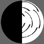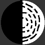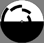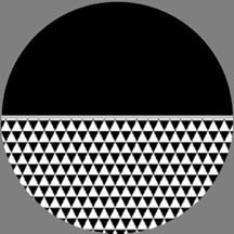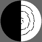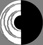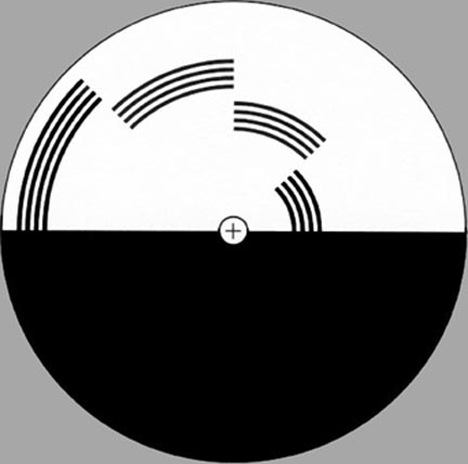 Most Fechner disks are divided into two distinct semicircles. One consists of (usually) concentric black arcs against a white background. The other semicircle is typically solid black. The purpose of the solid black semicircle is to increase contrast so the faint colors are easier to see. This is the same effect that makes black opals appear to have brighter colors than crystal opals. The color producing areas may be equally bright in both gems but the black background of the black opal make the colors stand out more.