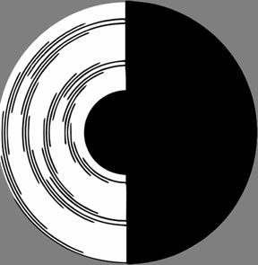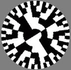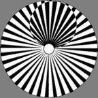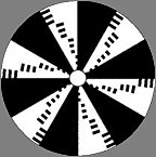 To discover which black-and-white disk patterns worked the best, I searched for as many different patterns as possible, printed them on card stock, cut them out and attached them one at a time to the face of a disk sanding attachment in an electric drill. Testing each in turn, I was able to determine which produced the strongest color illusions and which did not. Along the way I also learned that for the most part the rotational speed needs to be between 80 and 300 revolutions per minute (rpm.) Faster and the spinning pattern blurs into shades of gray. Slower and the color illusion doesn't appear. The following list presents what I found, starting with the least interesting: