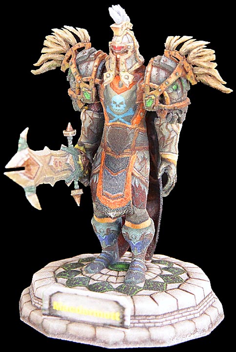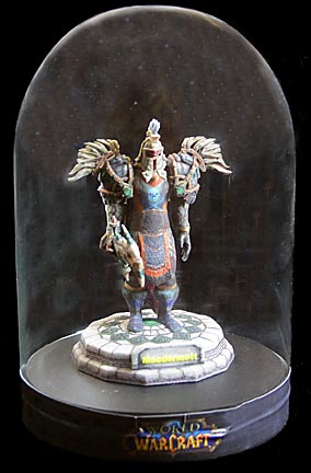 When I quit playing World of Warcraft I wanted a memento of the time I'd spent in that wondrous world. I discovered that a company called Figure Prints had an agreement with World of Warcraft that allowed them to access character files, even after a player quit playing, download the 3D image files of that character and using a 3D printer create a small, full color statue of that character. Although the $140.00 cost for my main character, Macdermott, was steep, I'd spent so much time with him he'd become a part of my life. I wanted this to honor all he endured in my behalf.