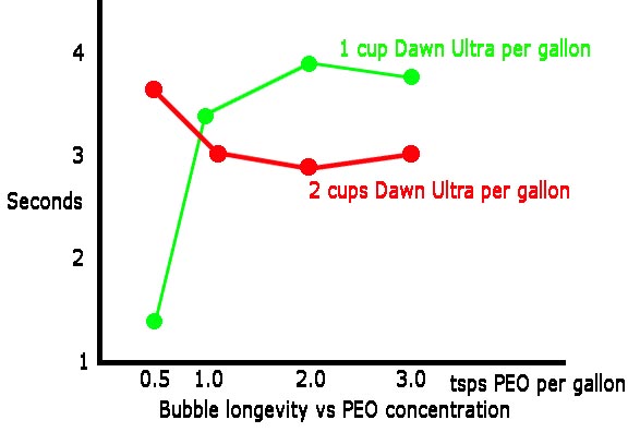 2) When the J-lube was increased to 1 teaspoon per gallon the bubbles lasted an average of 3.0 seconds.