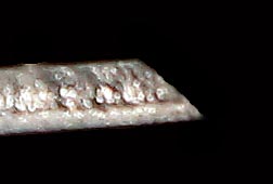 Next, use a file or Dremel tool to grind a sharp chisel edge on the top corner.