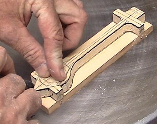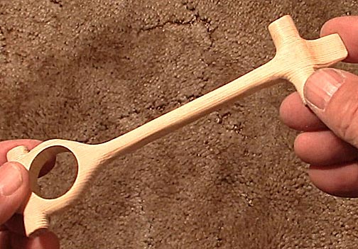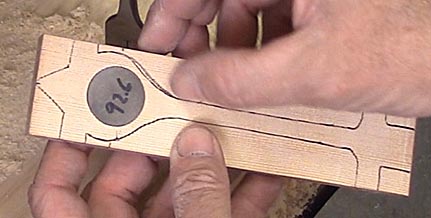 Physics determines the car's shape. You want as much wood removed as possible so that as much weight as possible can be concentrated one inch in front of the rear axles. Doing so puts the greatest amount of weight high up on the track's starting point so that the car has the maximum amount of potential energy to turn into speed. But, you don't want the weight too far back or the car will be unstable and swerve so often as it runs down the track that it looses speed. The body shape that accomplishes this the best is the central rail design. The diameter of the central rail is 3/8ths of an inch. Less than this and warping and breakage become problematic.