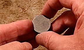 Follow filing with wet sanding using 3200, 3600, 4000, 6000, 8000 and 12,000 Micromesh strips 1/2 inch wide and three inches long. Always keeps the strips wet and moving to prevent friction from burning them. Spend one minute on each grit. Follow that with two minutes polishing with a woven cotton strip impregnated with an axle polish. I use Monkey Jam, but there are many equally effective options. Even toothpaste works well. During all of these steps, make sure you move the sanding/polishing strips down over the head of the nail to create a slight bevel, or cone, and to polish it.