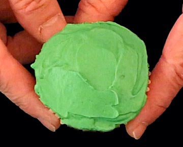 Start by frosting a batch of cupcakes with light green frosting. Cupcakes with high domes work best because they create a sense of depth to the face.