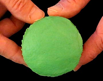 Scatter various sized dots of dark green frosting over the face with a 1/8-inch (#5) tip.