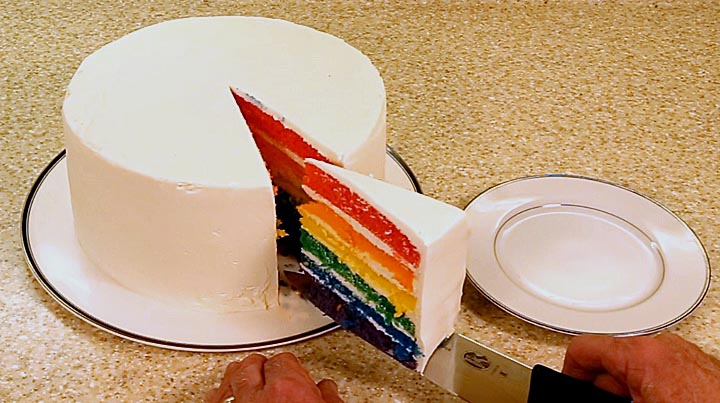 Whether you're eight years old or eighty, the site of the first slice from a rainbow cake is sure to make you smile. This web page explains how easy it is to make one of these colorful delights.