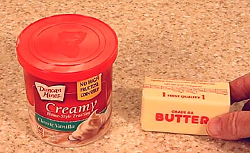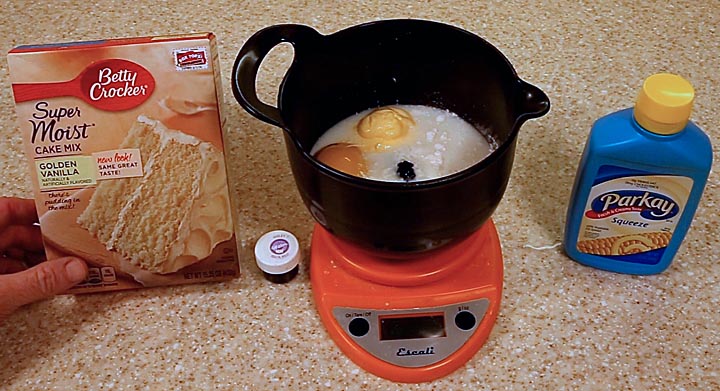 Before going any further, I'd like to make a comment about the use of Squeeze Parkay. As a margarine I don't think it tastes very good. But, as a cake additive I've learned that the taste of the resulting cake is much better than using either butter, other margarines or butter flavored Crisco. There's something about how it reacts with the other ingredients or the heat of baking that makes it work better than any other oil substitute. Try it. I think you'll like it.