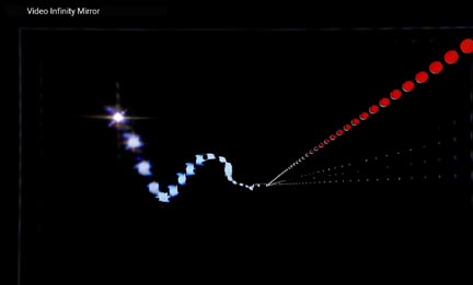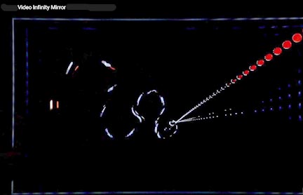 A very interesting effect can be created by shining a laser pointer at the screen and moving it around. The camera picks up the reflection to start the repeating pattern.
