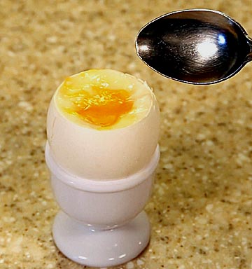 Eggs vary from 55 grams for the smallest large egg to over 80 grams for the largest jumbo egg. A recipe that works perfectly for a 62 gram egg will result in an over done egg that weighs 55 grams and a grossly under done 80 gram egg. The how-to section of this page provides a scale of baking times based on egg weight. While this is a key element in making perfect soft boiled eggs it's not the only trick you'll need.