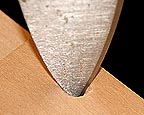 This caused them to stick out, scraping table tops whenever she put the loom down. The simple solution was to remove the screws, carve out a countersink by twisting the tip of a carving knife in the screw hole