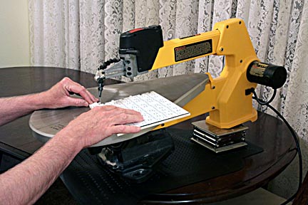 If it's been awhile since your practice session, grab the practice board and try a few cuts to get back into the feel of things first. Then take the puzzle blank and prepare yourself mentally. Be aware that one mistake can ruin a puzzle. Unfortunately this mistake always seems to happen several hours into cutting after you've invested considerable time and effort. So at all times maintain sharp focus on what you're doing and above all, anticipate what can go wrong to avoid disasters.