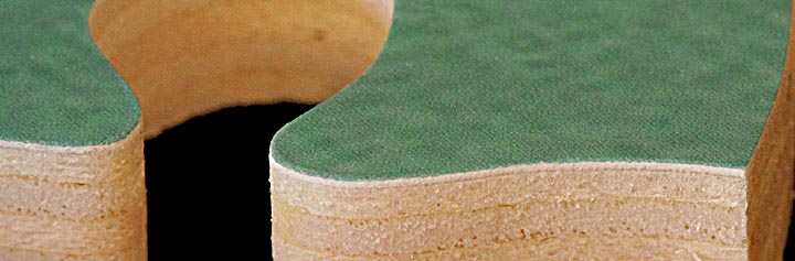 First, whether you're using a fiberboard, plywood or solid wood backing, all such products have slight variations in strength and density. This means that if you cut with constant pressure the cutting speed will speed up and slow down unpredictably. Because puzzle cutting blades are so thin and sharp, this can lead to times when the blade suddenly charges ahead, cutting much further than you intended. The blade's fine teeth can clog with sawdust, greatly slowing its cutting speed. In those dark moments when the fates are being particularly cruel, your blade can clog at the same time it hits a tough area of wood. Cutting speed drops to almost zero. You push harder to get things going and the second you do the teeth clear and the blade enters a soft area. It feels like the wood's turned into hot butter and the blade jumps forward out of control. ARGH!
