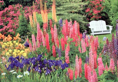It's pretty and there's a bench inviting the viewer to sit down but there is a wall of lupines blocking access to it. This image could be made more inviting by editing it to create a clear path from the bottom right of the image to the bench. This helps pull the viewer into the picture. The following image shows this: