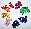 The rocks come in eight colors: white, yellow, orange, dark orange or red, magenta, green, blue and purple. The most common colors in the half dozen kits I got for this page were white and green. The rarest were the oranges. The colors of the spires that grow out of these rocks is slightly fainter than the rocks themselves.