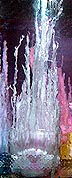 When one of the rocks (pieces of metallic salt) is dropped into the sodium silicate (an acid) solution, the surface dissolves and combines with the sodium silicate to form a gelatin. This gelatin stops the sodium silicate but allows water through to dissolve more of the rock. This water, now containing dissolved metallic salt, is lighter than the gelatin and surrounding water so it rises, pushing its way through the gelatinous coating. As soon as it comes in contact with the sodium silicate in the water it forms more gelatin, this time on top of the first layer of gelatin. The process continues with water seeping through the gelatin, dissolving more rock, rising, and being gelatinized. Eventually the entire rock is consumed and the process stops. (During the rinsing step, you can look down and often see that the spires have grown in a ring around the rock and that the center of the ring, where the rock was, is completely empty.)