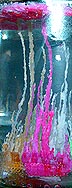 During this process, the gelatin slowly firms up. The spires are then stable and can be rinsed and stored. Prior to this point they are extremely soft and moving the jar can create currents, which bend the spires. After they harden they remain in this bent shape. This can create interesting shapes but they are much more easily broken.