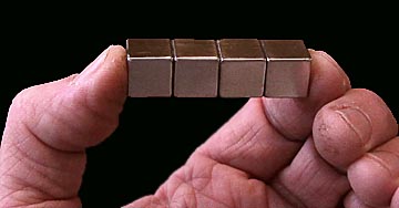 The magnetic projectile is a stack of four rare earth cube magnets, again, available from Amazon for $6. They are 1/2 inch on each edge.