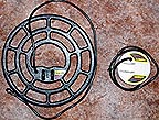 I slipped the headphones on and just for laughs pushed the "ON" button. There I got my second surprise: the detector turned on! It had come with good batteries already installed. I dropped a quarter on the floor and swung the disc over it. Bleep! Two minutes after unzipping the case I was detecting coins. Since this is my first detector I have no way of knowing if they are all this simple, but I was impressed.