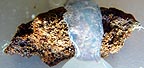 In real life it looks like a mixture of rust and mineral. What makes it interesting is that while it gives a very strong target alarm in all-metal, the Garrett's Target Imaging system won't lock on to it or even indicate it's there, even when the object is held right under the coil. It's barely attracted to a strong magnet, much less than a heavily-rusted nail.
