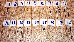 When I first watched the numbers jump around like this I was appalled. I thought the discriminator would always give the exact same value after each sweep over the same target. I even thought that the detector would be able to tell me what the denomination was by positioning the cursor under the penny, nickel, dime, or etc. spot. Instead what I got was a random series of widely-scattered numbers. Then I had the idea of writing down a large number of numbers for each target to see if there was a pattern... there was.