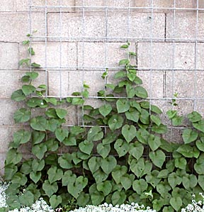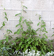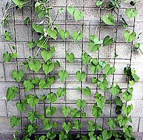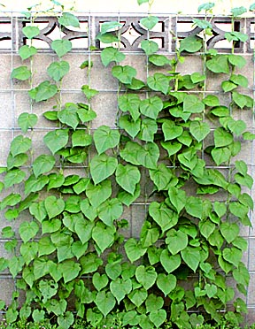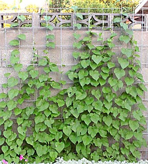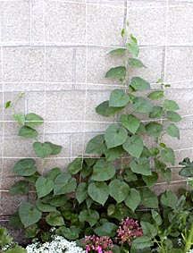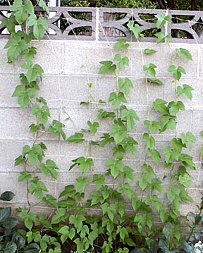 Six feet tall after 3 months, this plant has already proven itself an excellent climber that creates a dense covering.