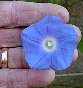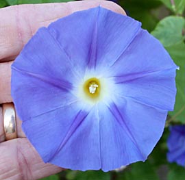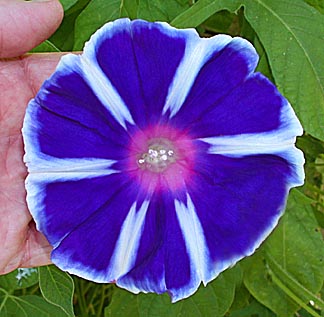 Blue Star produces large numbers of huge, pale blue flowers. As attractive as they are, they suffer from the same problem of Heavenly Blue, they just don't project the bright, exuberant color of Bright Eyed Girl.