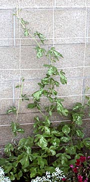 Fourteen weeks after planting, this variety's only 4-foot tall and is displaying variegated leaves. Such slow growth doesn't make it an effective wall cover.