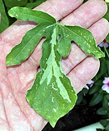 Late in the season the leaves of both Milky Way and its look-alike Pastel Star had taken on an unhealthy yellow color that suggested a virus had infected them. None of the surrounding morning glories shouwed any sign of the problem. Also, these plants seemed to attract aphids while none of the other morning glories were bothered by them.