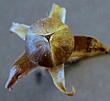 On April 28 I planted 70 feet along an east-facing wall and 45-feet along a west facing wall solid with Crimson Rambler (Bright Eyed Girl) morning glories. The problem with doing so was that these are the same areas planted with morning glories last year. Those plants produced thousands of blooms which, when they matured, produced thousands of seed pods like the following: