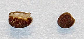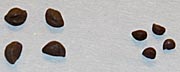 long Scarlet O'Hara morning glory seeds on the left, eighth-inch