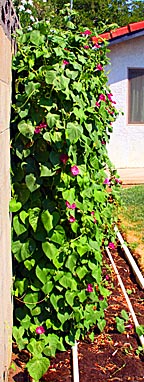 By June the vines covered the 6-foot trellises and the first flowers were blooming. I was disappointed to discover that fully 20-percent of the plants produced lighter pink flowers and another 5-percent were blues and purples. It would seem seed companies get a little careless when it comes to morning glory seeds.
