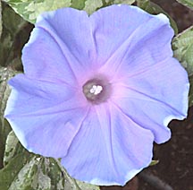 One of the most popular morning glories. The extremely refined flowers average 3-inches in diameter and are a clear sky blue. They open shortly after temperatures rise above 60 degrees and remain open until 2 PM unless air temperature top 105 degrees. If morning temperatures are in the 50s, they remain closed until the air warms up.