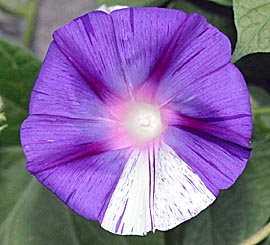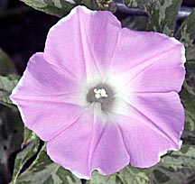 Available in separate colors or red, pink, blue and violet, this variegated-leafed morning glory is a very slow grower that barely reached 9 inches tall after sixteen weeks of growth.