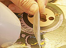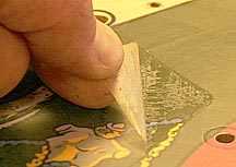 Warming the Mylar with a hair drier softens the adhesive so it's easier to pull up. I found that doing so made it four times easier to pull the Mylar up than with the first technique. This greatly reduces the likelihood of pulling up paint.