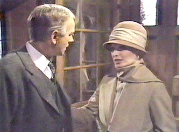 Another pronunciation issue presents itself much earlier at the end of Act I. Richard has just described Maria's plan to take him away "on approval" to which George says it sounds rather "harsh." The "r" and "sh" sounds are quite clear. Depending on the quality of the recording it may also sound a like "horse." The screen play as originally written has him saying "hot." Whether Mr. Brett mispronounced it, ad-libbed it or the teleplay was rewritten is impossible to tell. To my ear "hot" would have more accurately captured the implication of sexual impropriety to which George was alluding than "harsh."