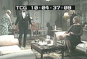 The bad news is that the only copies the LA office can make are called "screener" copies. These have a black bar with running numbers indicating the time in 1/100-second increments. Had this timecode bar been small and at the very bottom of the screen it might have been tolerable. But, it's large and located at near the top of the screen where it cuts off the heads of the actors, as the following screen shot demonstrates: