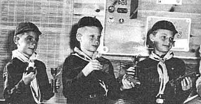 The very first Pinewood Derby Champions from left to right: Dennis Lowies age 8, Richard Hoffman age 10 and Mike Thorne age 9.