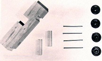 Royal Rangers Pinewood Derby uses the original narrow wheel, adjustable screw axles and axle mounting dowels.