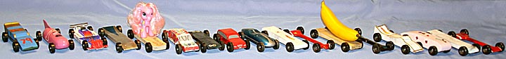 Half of the cars in our stable of vehicles were made by our grandchildren. The other half were made specifically to loose races so that every child has at least one race that they are sure to win. Two examples are the "Pony Express" car and the "Bananamobile." They make it to the end of the track but just barely. They also look so silly that the kids always laugh as these ridiculous cars gyrate their way down the track. (I never race my own high performance cars except as an exhibition. Beating little guys will not help them maintain their interest pinecar racing.) This suggestion only applies to pinewood derby races geared to young children. Adult races, and yes... grown ups have fun building and racing pinewood derby cars, should do without "loser" cars.
