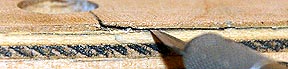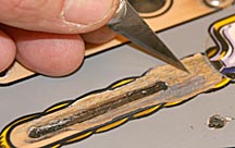 I began by using an exacto knife to remove the old patch material and all loose bits of wood.
