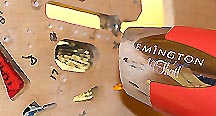 That completed all the major mechanical repairs on this Addams Family pinball playfield. The next step was to begin touch up painting but before that I mixed up a small batch of wood colored epoxy putty and wearing high powered reading glasses, slowly examined every inch of both the front and back of the playfield, filling any voids left by bits of plywood veneer breaking loose. This is common wherever two holes are very close. I was surprised to discover several dozen spots where patching was necessary. With that done it it's time to move on to painting.