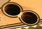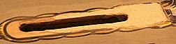 chair hole, which had half an inch of wood worn off its front edge: