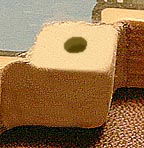 My first attempt to fill in the lost wood used a liquid epoxy. The problem was that the epoxy's surface tension was so great it formed a high dome no matter how often I leveled it. This dome was extremely hard to sand down. Once cured, the epoxy became very brittle and I felt it was sure to crack considering the number of balls that were going to fall on it. I removed it by flicking off bits using an exacto knife.
