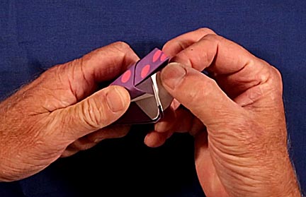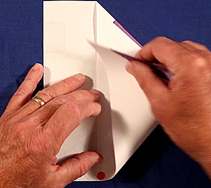 Bring that corner up and lay it along the left edge of the paper and crease the folded edge down. Avoid super-tight creases. A little softness to them makes getting fingers into the claws easier.