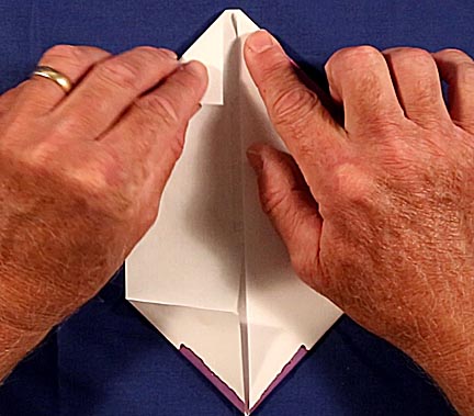Rotate the paper so the point points upward and fold the lower trapezoid upward.
