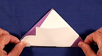 Fold the triangle in half then unfold it. This creates a reference line for the next fold.