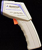 The machine I got was an American DJ Shadow II Portable Smoke Machine ($130 from a party supply store). You plug it in, wait fifteen minutes for it to heat up, and press a button. Wham! Instant clouds of dense smoke. The only problem was that this unit works by squirting a small amount of water-based, non-toxic smoke juice into a heated element, which vaporizes the liquid turning it into smoke. This process cools the hot element so quickly that the unit only produces smoke for one minute before it cools so much an automatic circuit turns if off. Wait another fifteen minutes and you can have another 60 seconds of smoke. While it works, it's great. The smoke is dense, non-toxic, has a not-unpleasant chemical tang to it, and is cool to the touch. My complaint with this machine is that it needs enough power to run continuously. The same company makes a larger unit ($180) that puts out twice as much smoke but the literature says nothing about how long it will do it so I'm not willing to invest in one. My advice is to buy ten pounds of dry ice and drop it into a ten-gallon bucket of hot water.